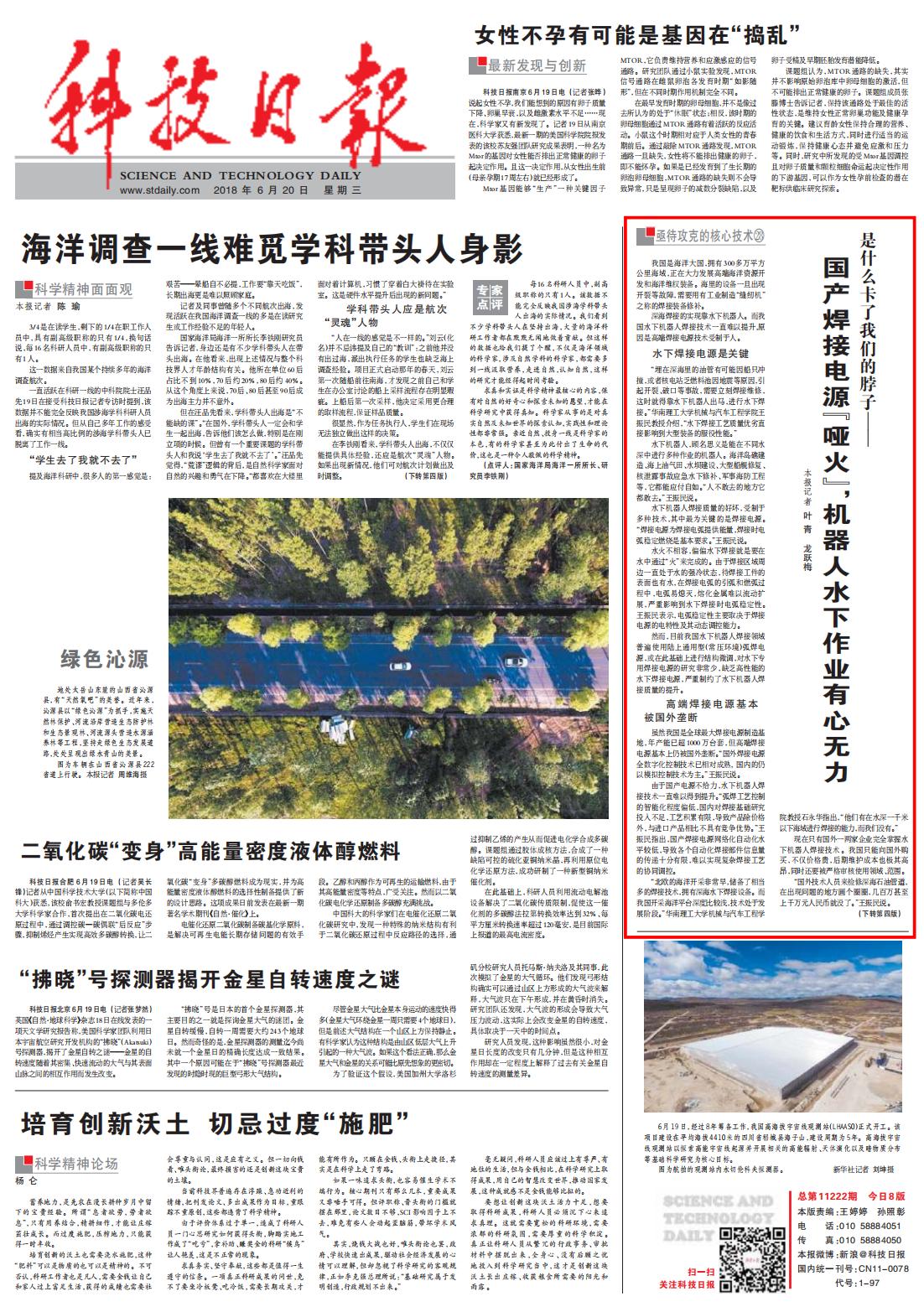 《科技日报》重点报道中国亟待攻克的“卡脖子”核心技术之一:水下焊接电源